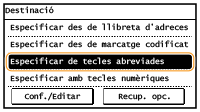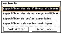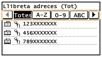 Mostra destinacions amb els noms dels destinataris els primers caràcters dels quals corresponen als caràcters de la pestanya seleccionada.
