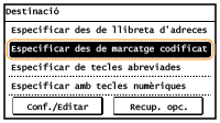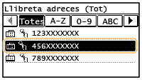 Mostra totes les destinacions desades a la Llibreta d'adreces. Per obtenir informació sobre les marques que hi ha al costat de les destinacions, vegeu les explicacions següents.