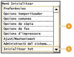 Per inicialitzar les opcions d'<Opcions de xarxa> i <Opcions de gestió del sistema>, vegeu Inicialització de les opcions de gestió del sistema.