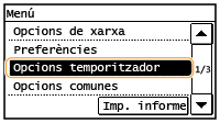 Es mostra una llista de totes les opcions del temporitzador amb descripcions breus. Les opcions predeterminades estan marcades amb una daga (