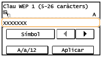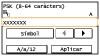 Introduïu la clau de xarxa amb les tecles numèriques i toqueu <Aplicar>. Introducció de text