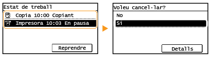 Seleccioneu el documento a la pantalla <Estat treb. còpia/imp.>