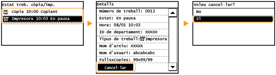 Cancel·lació des de Remote UI (IU remot)Podeu cancel·lar la impressió des de la pàgina [Print: Job Status] de Remote UI (IU remot): Comprovació de l'estat actual dels documents impresos