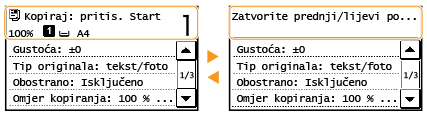 Poruke se prikazuju pri vrhu zaslona ako je razina tonera niska ili je poklopac ostao otvoren. Prikaz se mijenja iz prikaza običnog zaslona u prikaz poruke.