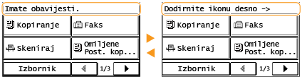 Ako se prikazuje <Imate obavijesti.> ili <Dodirnite ikonu desno ->>