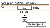 Postavite razdoblje nakon kojeg uređaj automatski prelazi u stanje mirovanja