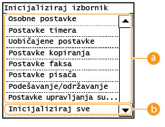 Da biste inicijalizirali <Mrežne postavke> i <Postavke upravljanja sustavom>, pogledajte Inicijaliziranje postavki upravljanja sustavom.