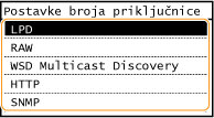 Priključci služe kao krajnje točke za komunikaciju s ostalim uređajima. Obično se za glavne protokole koriste uobičajeni brojevi priključaka, no uređaji koji koriste te brojeve priključaka podložni su napadima jer su ti brojevi priključaka općepoznati. Administrator mreže može radi poboljšanja sigurnosti promijeniti brojeve priključaka. Kada se promijeni broj priključka, novi se broj mora razmijeniti s komunikacijskim uređajima kao što su računala i poslužitelji. Definirajte postavke broja priključka u skladu s mrežnim okruženjem.