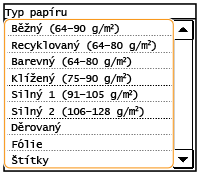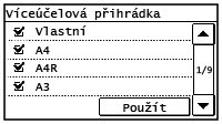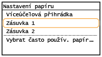 Zařízení lze nastavit tak, aby se na obrazovce výběru zobrazovaly pouze často používané velikosti papíru.
