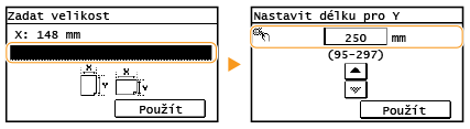 / zadejte délku strany <X: ">, celá a desetinná čísla zadejte pomocí tlačítek / , kterými můžete pohybovat kurzorem mezi čísly, poté klepněte na tlačítko <Použít>.![]() |