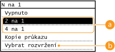 , pokud jej však zvýšíte, nemusí se okopírovat okraje dokumentu.<2 na 1> / <4 na 1> není k dispozici při použití funkce <Smazat rám>, <Originály jiné velikosti>, <Kniha