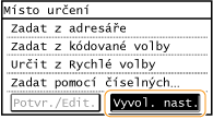 Klepněte na tlačítko <Ano>.Pokud v kroku 2 zadáte skupinovou volbu, zobrazí se položka „XX míst(a) určení“. Klepnete-li na tlačítko <Počet míst určení: >, zobrazí se místa určení uložená ve skupině.