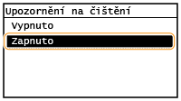 Chcete-li zobrazit zprávu při zjištění znečištění v oblasti skenování, nastavte možnost <Upozornění na čištění> na <Zapnuto>.