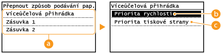 ). Automatický výběr zásuvek je vždy zapnutý pro tisk na papír podávaný z víceúčelové přihrádky.