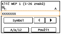 Pomocí číselných tlačítek zadejte síťový klíč a klepněte na tlačítko <Použít>. Zadávání textu