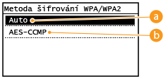 ![]() <Auto>Nastavte zařízení na automatický výběr možnosti AES-CCMP nebo TKIP podle nastavení bezdrátového směrovače.