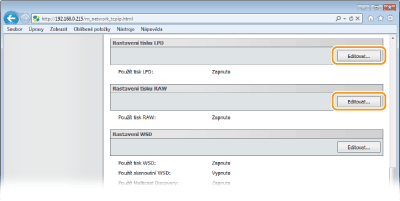 Klikněte na [Editovat...] in [Nastavení tisku LPD] nebo [Nastavení tisku RAW].
