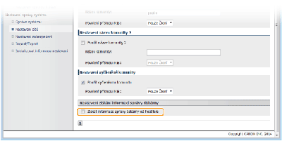 Zakázání protokolu SNMPv1Některé z funkcí zařízení nebudou dostupné, například získávání informací o zařízení pomocí ovladače tiskárny.