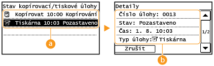 Pokud se dokumenty dlouhou dobu netisknou, můžete zobrazit seznam dokumentů čekajících na vytištění.