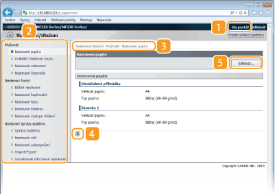 Zobrazí se stránka [Nastavení/Uložení]. Pokud jste přihlášeni v režimu správce systému, můžete měnit nastavení položek a ukládat/načítat registrovaná data.