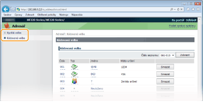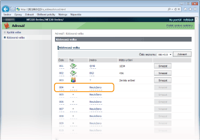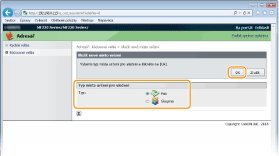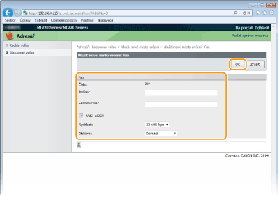 Uložení položek do adresáře prostřednictvím vzdáleného uživatelského rozhraní (imageRUNNER 2204F)