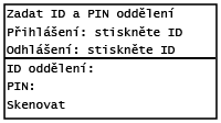 Pokud se pokusíte o použití zařízení ve chvíli, kdy je povolena správa ID oddělení, zobrazí se následující přihlašovací obrazovka: