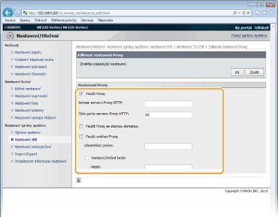 Zaškrtněte políčko [Použít Proxy] a zadejte požadovaná nastavení.