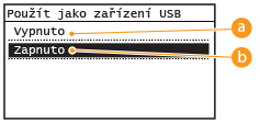 Port USB nacházející se na pravé straně zařízení je možné zakázat. Pokud je tento port zakázán, zařízení nemůže komunikovat s počítačem pomocí kabelu USB.