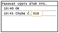 Pokud tisk neprobíhá úspěšně nebo není možné odesílat nebo přijímat faxy a naskenované dokumenty nebo pokud se vyskytne jiná chyba, zobrazí se v hlášení nebo na obrazovce <Monitor stavu> zpráva ve formátu trojmístného čísla (chybový kód). Dále je uveden popis příčin a řešení náležející k jednotlivým chybovým kódům. Postup tisku chybového hlášení a popis informací v hlášení naleznete v části