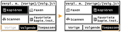 Tik op <Vorige> of <Volgende> om de knop te verplaatsen, en tik op <Toepassen>.