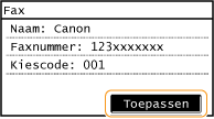 U kunt ook gedetailleerde instellingen voor bestemmingen opgeven via <Menu>  <Faxinstellingen>. Via <Adresboek> opgegeven instellingen bieden echter toegang tot de gedetailleerde instellingen van bestemmingen die in het adresboek zijn opgeslagen.