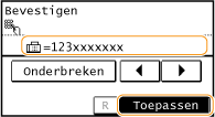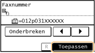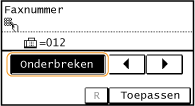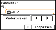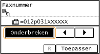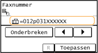 Tik op <Onderbreken> om eventueel een pauze aan het einde van het faxnummer toe te voegen.