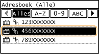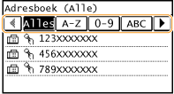Alle bestemmingen weergeven die in het adresboek zijn opgeslagen. De symbolen of pictogrammen naast bestemmingen worden hieronder toegelicht.