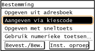 Bestemmingen opgeven door codes voor verkort kiezen rechtstreeks in te voeren