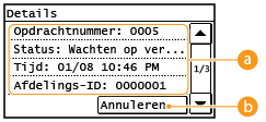 Hier ziet u het aantal te verzenden documenten, de instellingen en andere details. Als u alleen de details wilt controleren zonder de documenten te verzenden, drukt u op