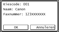 <Ja>.Als u bij stap 2 Groepskiezen hebt opgegeven, wordt 'XX bestemming(en)' weergegeven. Als u op <Aantal bestemmingen: > tikt, ziet u hoeveel bestemmingen in de groep zijn opgeslagen.