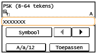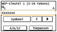 Voer de netwerksleutel in met de numerieke toetsen en tik op <Toepassen>. Tekst invoeren