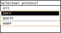 Tik op <DHCP>, <BOOTP> of <RARP>.