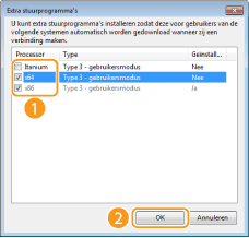 ![]() Selecteer extra stuurprogramma's uit de volgende opties in overeenstemming met het besturingssysteem van de afdrukserver.