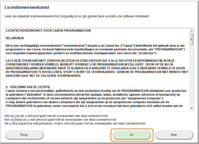 Lees de licentieovereenkomst en klik op [Ja] om akkoord te gaan.