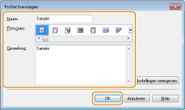 Typ een naam voor het profiel bij [Naam], selecteer een pictogram en klik op [OK].