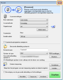 ![]() U kunt niet scannen als het instelscherm van MF Toolbox wordt weergegeven. Sluit het scherm voordat u gaat scannen.