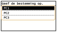 De volgorde van het scannen van een document en het opslaan op een computer kan alleen worden uitgevoerd wanneer vanaf het apparaat wordt gescand. Voer de scan uit terwijl u opgeeft op welke computer de documenten worden opgeslagen, geef op of de documenten in kleur of in zwart-wit worden gescand, of de documenten worden opgeslagen als PDF- of JPEG-bestanden en geef de overige instellingen op.