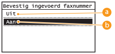 Selecteer deze optie als u het scherm voor het bevestigen van faxnummers wel wilt weergeven.