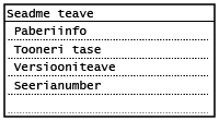 Kuvatakse seadme olekut (allesjäänud paberi- või toonerikogus).