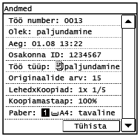 Kuvatakse valitud üksuse praegune olek. Allpool on näitena toodud kuva <Paljun.-/prinditöö olek>.