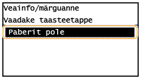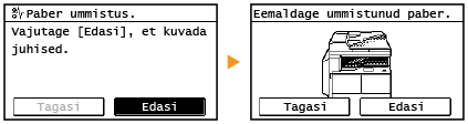 Teatud juhtudel kuvatakse tõrke ilmnemisel juhised, mida tõrke lahendamiseks teha. Järgige probleemi lahendamiseks kuvatavaid juhiseid. Allpool on näitena toodud kuva, mis kuvatakse paberiummistuse korral (