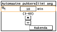 Määrake aeg, mille möödumisel seade läheb automaatselt puhkerežiimi