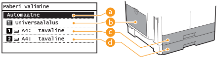 Kõigepealt tuleb määrata paberiallikasse asetatud paberi formaat ja tüüp.