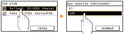 vajutamist, siis valige näidikul <Tühista> või vajutage juhtpaneeli klahvi